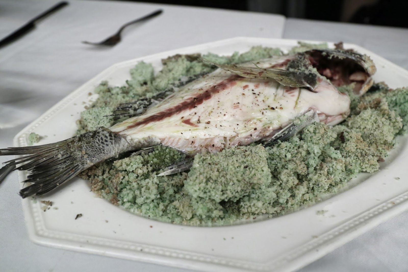 Yellowfin sea bream (黃腳臘) in herb salt crust - this wasn't exactly what I had in mind, but I guess I wasn't more specific when I was discussing with David. I was more thinking along the lines of this, but I was happy to have the fish salt-baked too. The flesh of the sea bream was really, really soft and tender. I'm glad there was only one fish to share among us... and I was rather surprised that No Fish actually ate her portion.