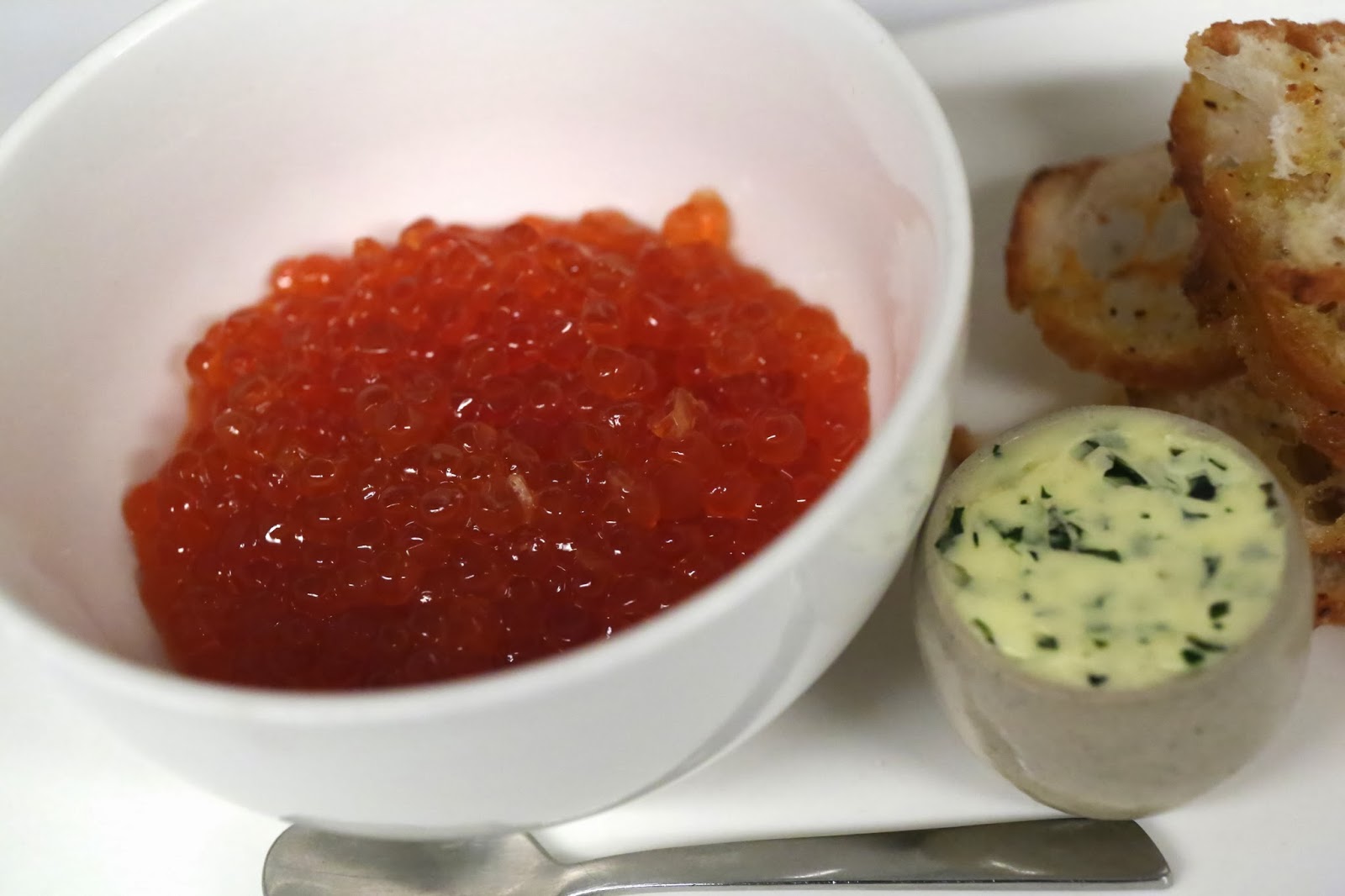 Salmon roe - the salmon apparently were caught off Sakhalin, which is pretty interesting. Salted and served on toast with some seaweed butter from Bordier.