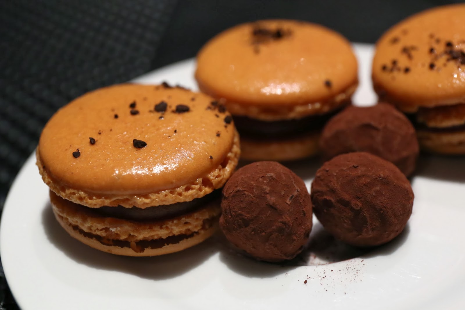 Coffee macarons, chocolate truffles - the coffee macarons were pretty tasty, and not too soggy tonight.
