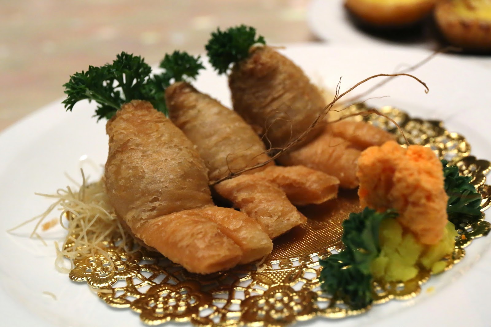 Puff pastry with egg custard in light genseng flavour (奶皇人參酥,略帶人參味道) - oh I could taste the ginseng alright... it's distinctive enough. Pretty interesting.