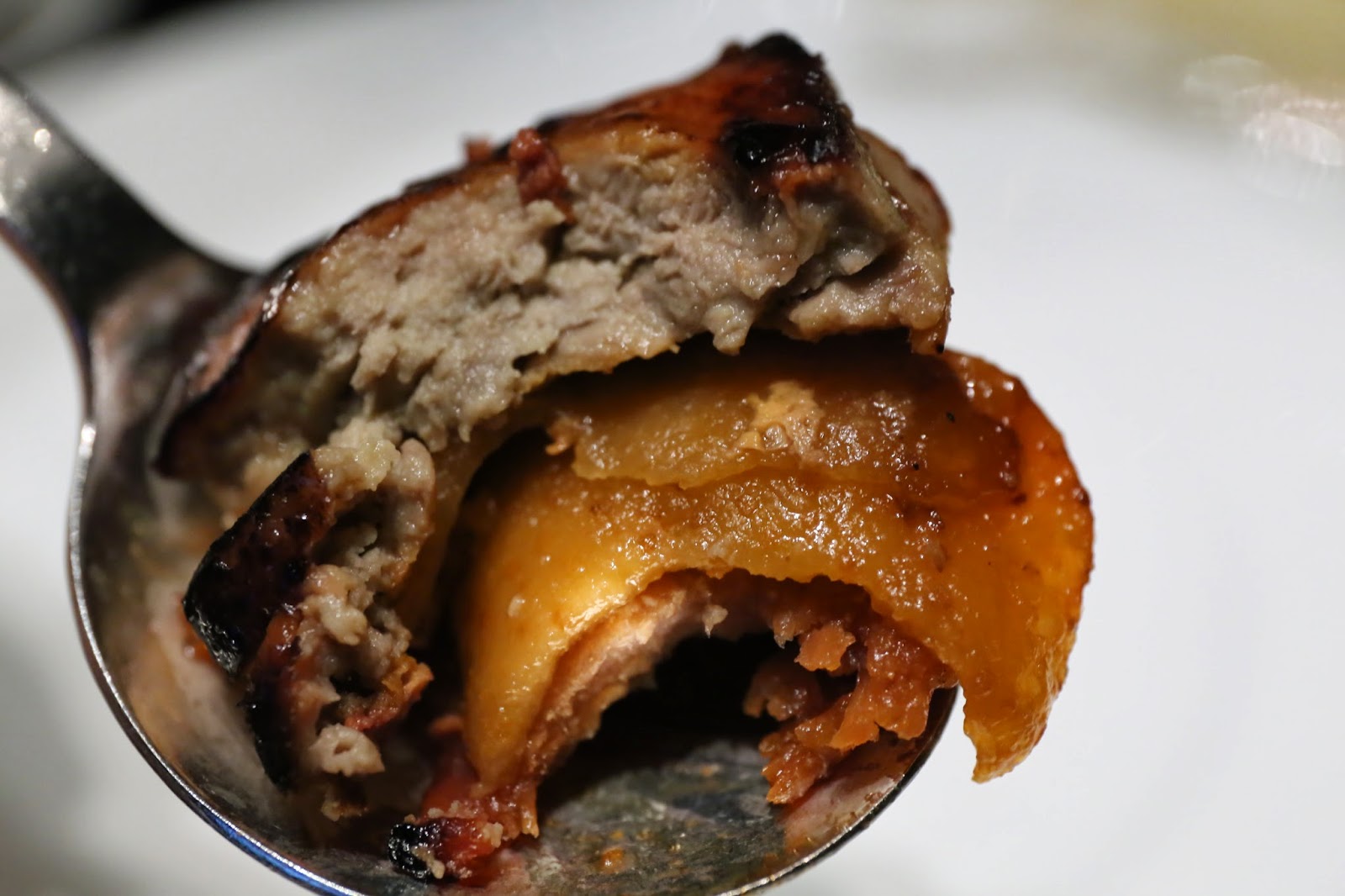 This here pig was stuffed not with glutinous rice, but with fried rice that was equally delicious, if slightly less filling. We decided that each of us would only have one thick slice, and packed the rest to take home.