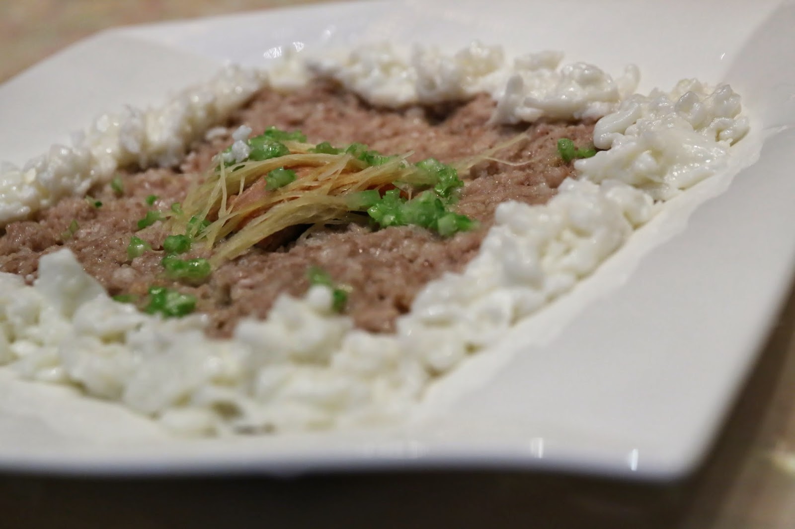 Poached fish mousse soup with bamboo piths and bean curd (竹笙魚圓) - the fish balls were very light and fluffy as I expected, and the tofu chiffonade (文思豆腐) is always a testament to the knife skills of the chef. Also came with bamboo piths, shredded ham and conpoy.