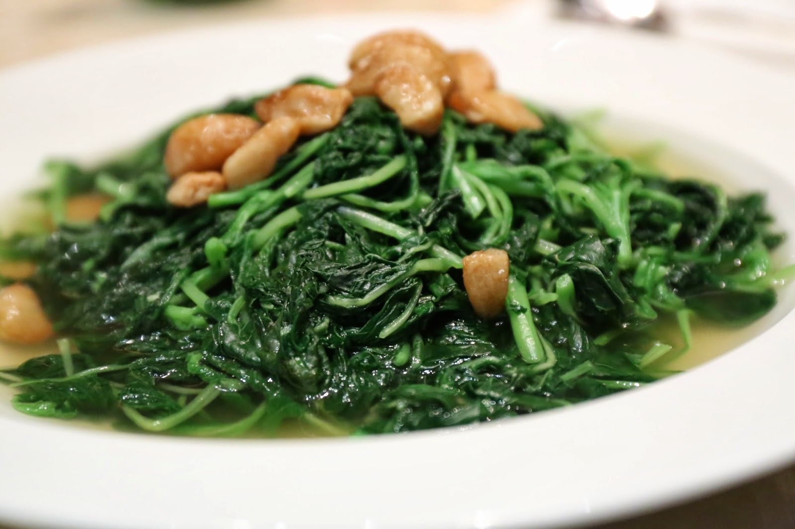 Leafy amaranth in superior broth (上湯浸莧菜) - there's always room for veggies in a Chinese meal... although we probably should have gotten more to balance things out. Love the garlic cloves!