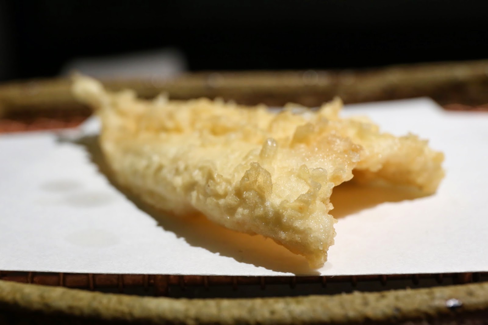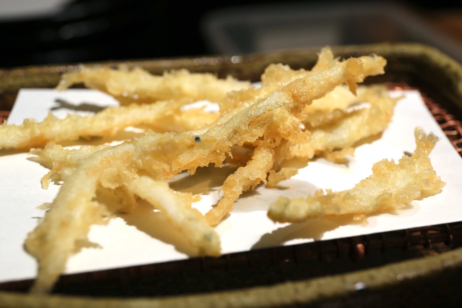 Icefish (白魚) - one of my favorite things to eat... Is it any surprise that Saotome-san put each fish into the oil individually, and they are also individually picked out instead of scooped up as a batch. He knows the order in which the fish went in, and keeping it to FIFO is important here...