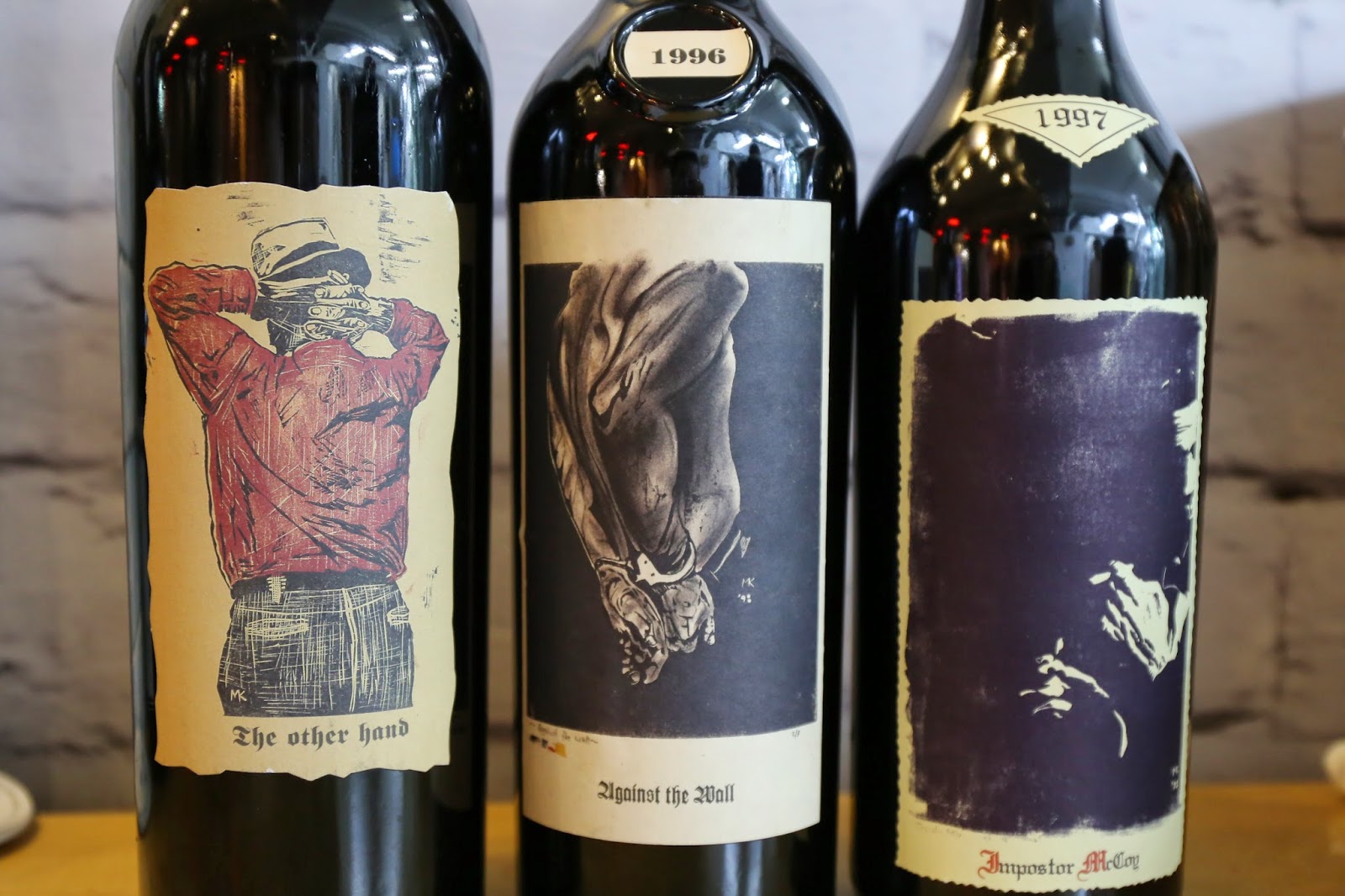 1997 Sine Qua Non Imposter McCoy - 100% Syrah. Minty, metallic and mineral. Pretty ripe and sweet on the palate.