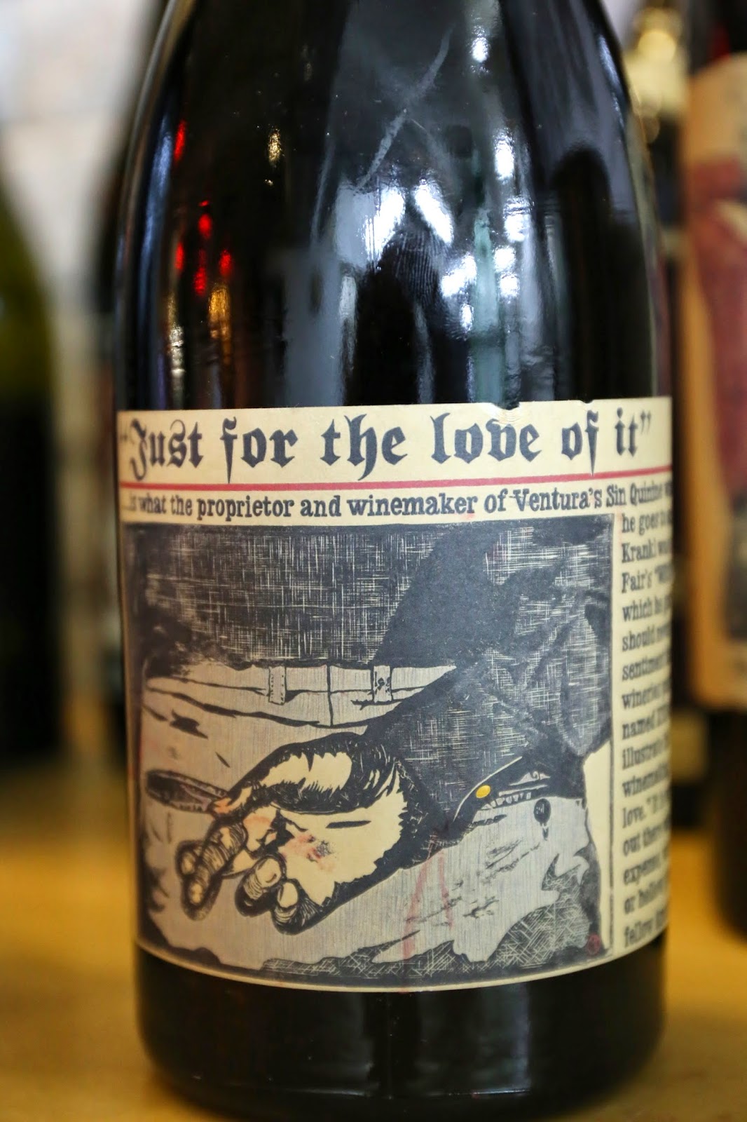 2002 Sine Qua Non Just for the Love of It - 96% Syrah, 2% Grenache and 2% Viognier. Metallic, smoky and meaty. Very concentrated.
