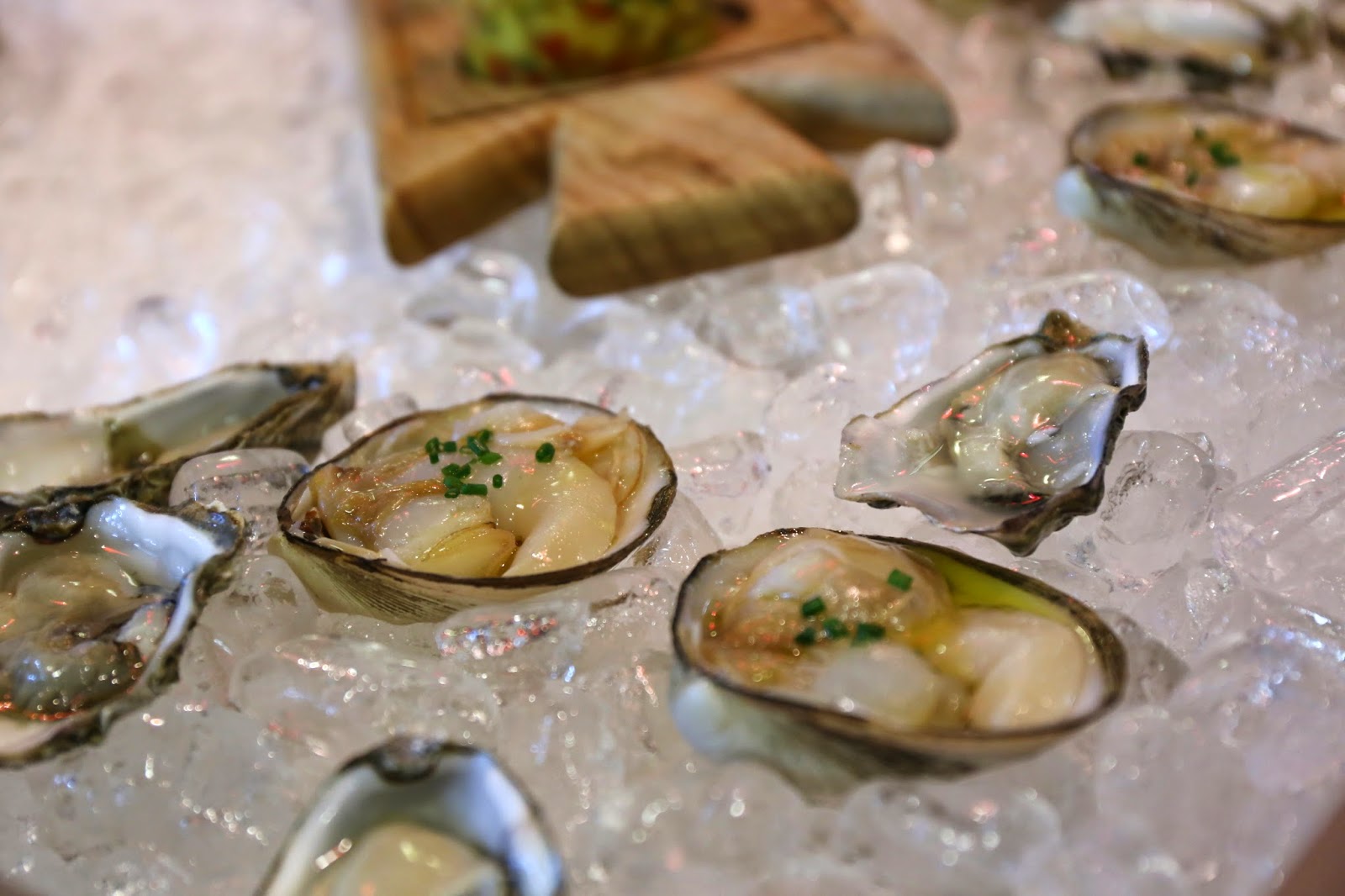 We started with some raw seafood, including marinated giant Cloudy Bay storm clams and Korean oysters, which tasted a little metallic, and pretty full-bodied.