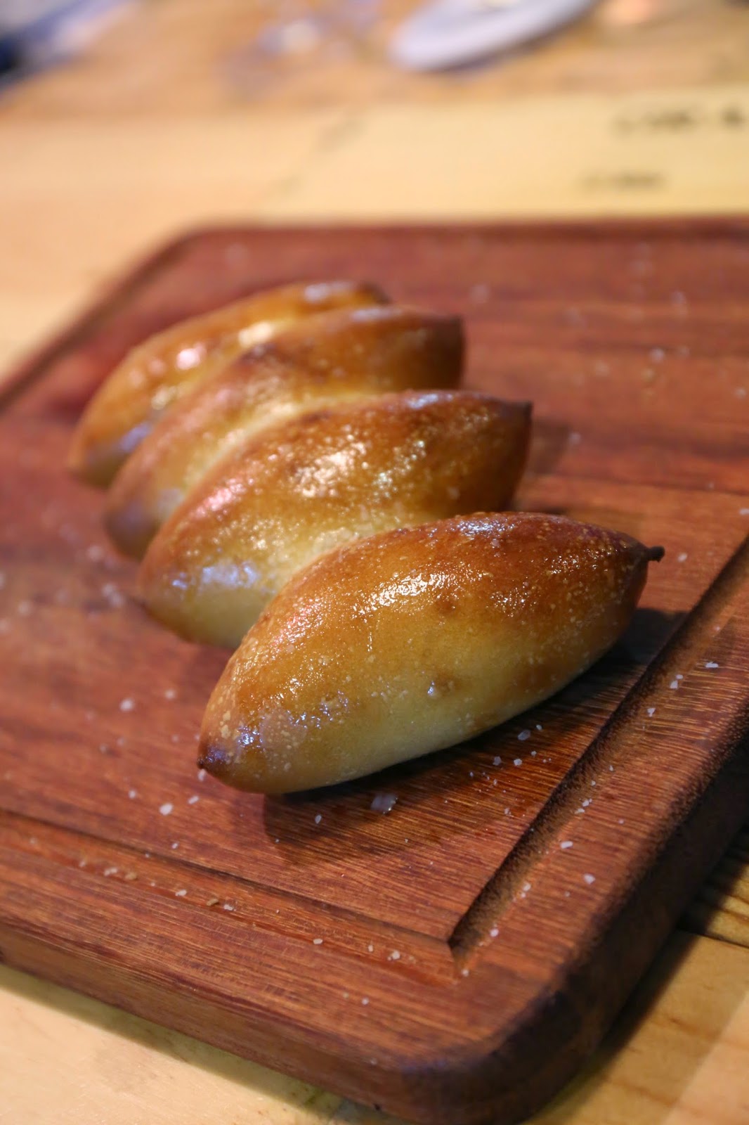 Freshly baked pull-apart bread basted with beef drippings and dusted with dry aged beef salt - yummy.