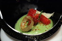 The amuse bouche was hairy gourd mash with sun-dried tomato and deep-fried shallots.