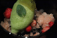 To clean our palates, we were offered some basil sorbet, wild strawberries, grapefruit granité and mint jelly. Very refreshing.