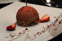 And now for something sweet… and the complimentary birthday dessert arrived first. We ended up not eating this pretty concoction made with hazelnuts.