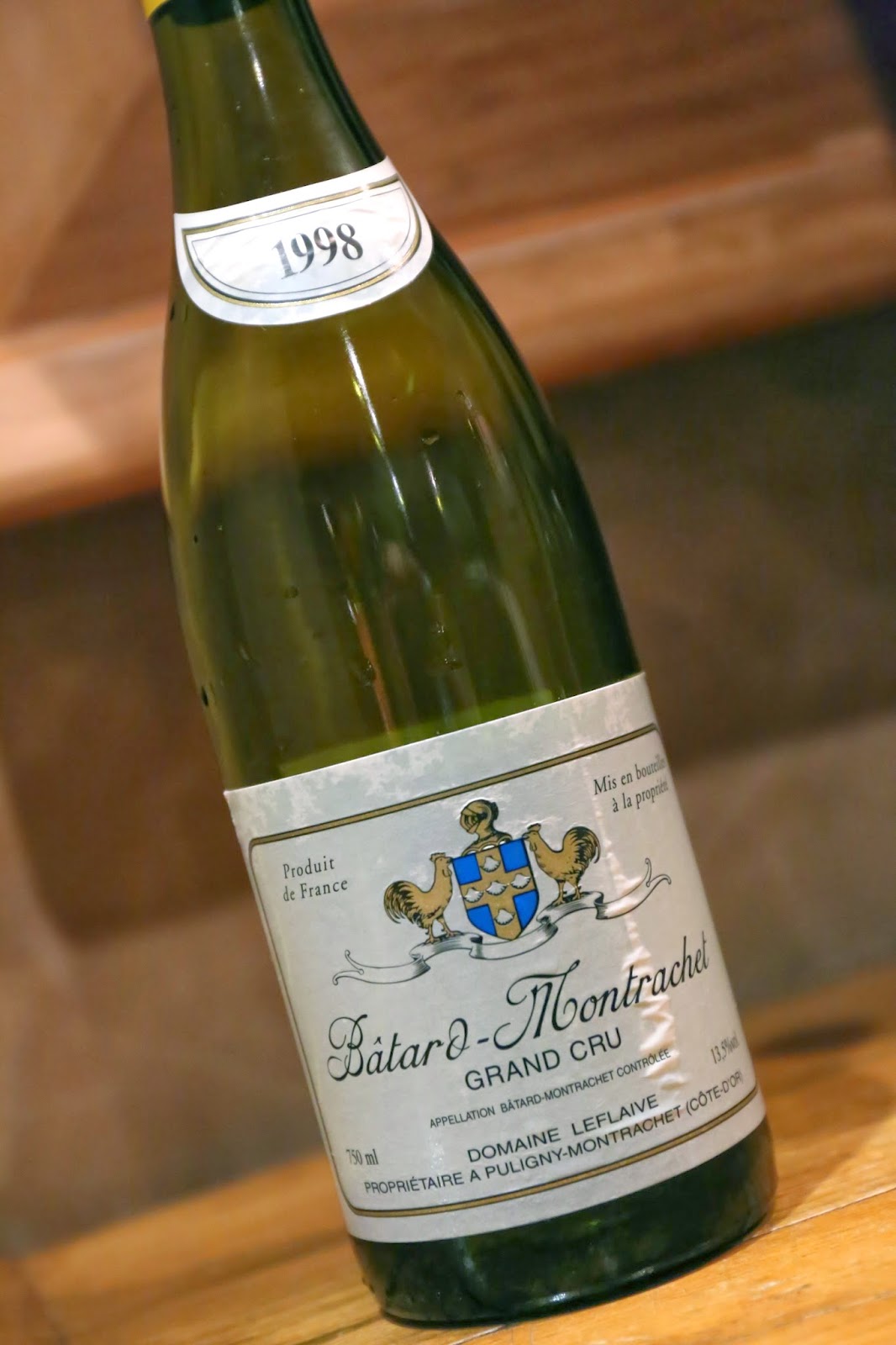 1998 Domaine Leflaive Bâtard-Montrachet - very toasty nose, with lots of grilled corn, and citrus notes. Very clean and powerful on the palate - yet round and soft - with a long finish. Beautiful!