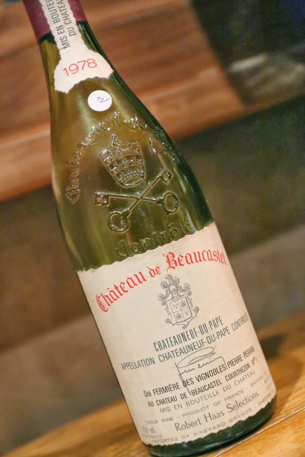 1978 Beaucastel - a little chalky, some sweet grass, and sharp alcohol. 92 points.