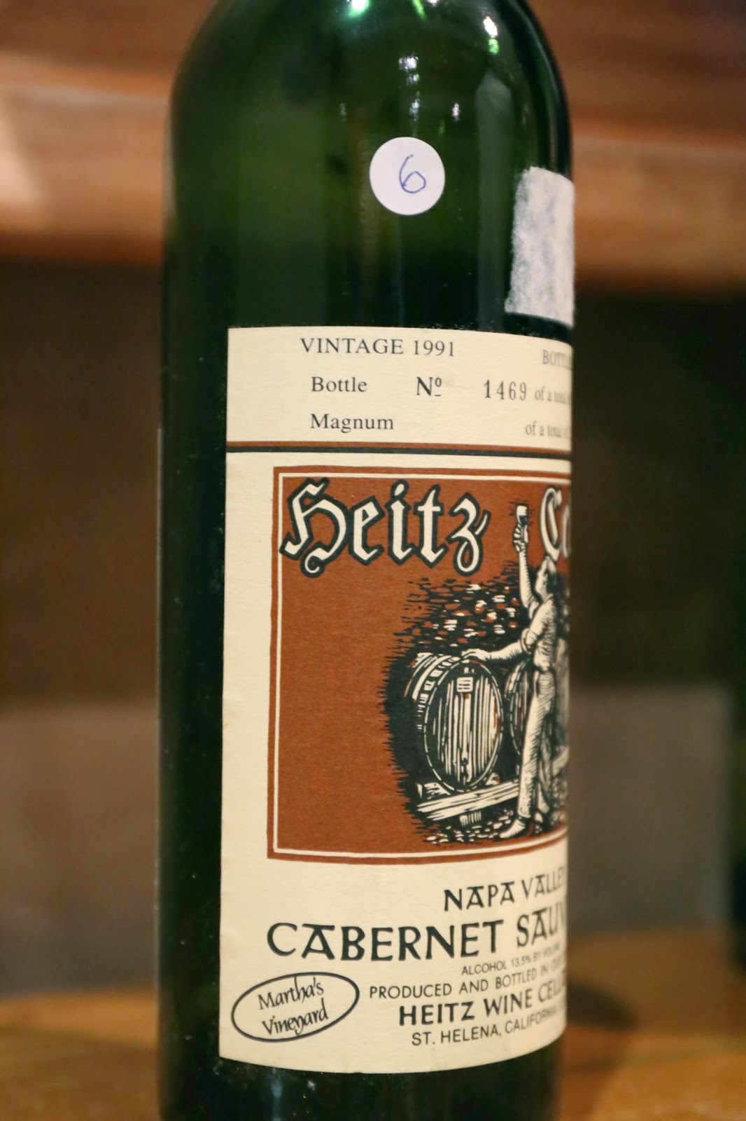 1991 Heitz Cellars Martha's Vineyard - sharp and alcoholic on the nose at first. A little green pepper and smoky. 96 points.