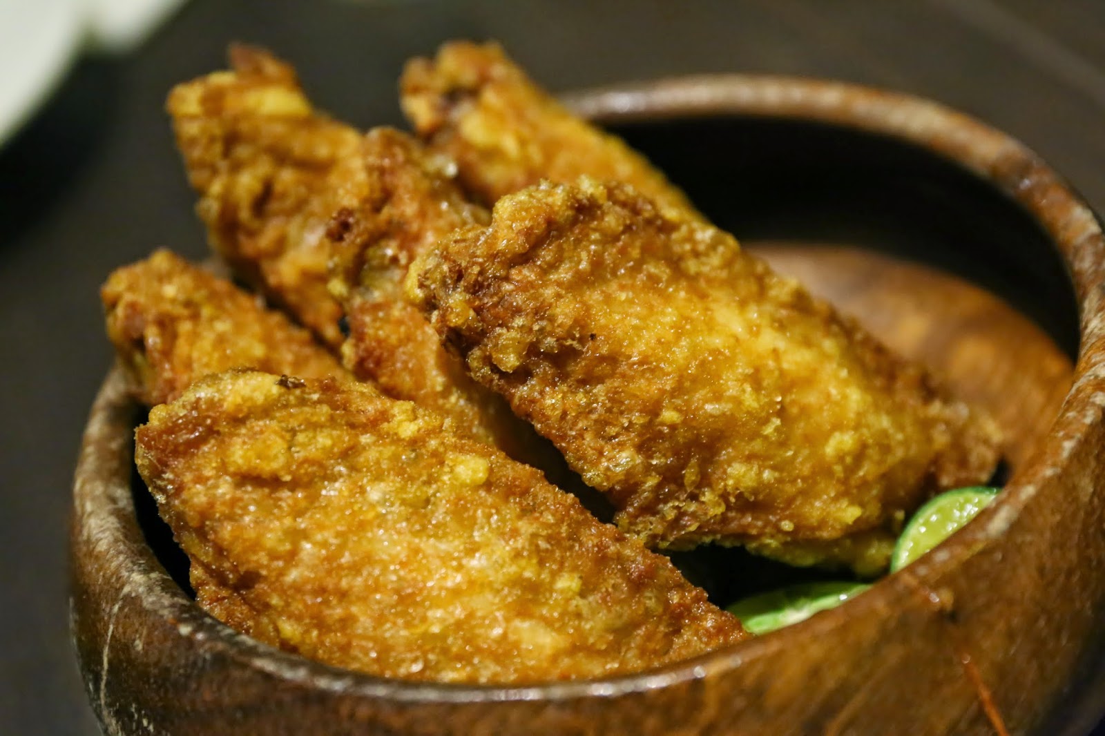 Turmeric wings - really crispy and awesome wings. Sooo tasty, except... neither Mr. Ho nor I picked up much of the turmeric... although I did notice a yellow hue underneath the skin.