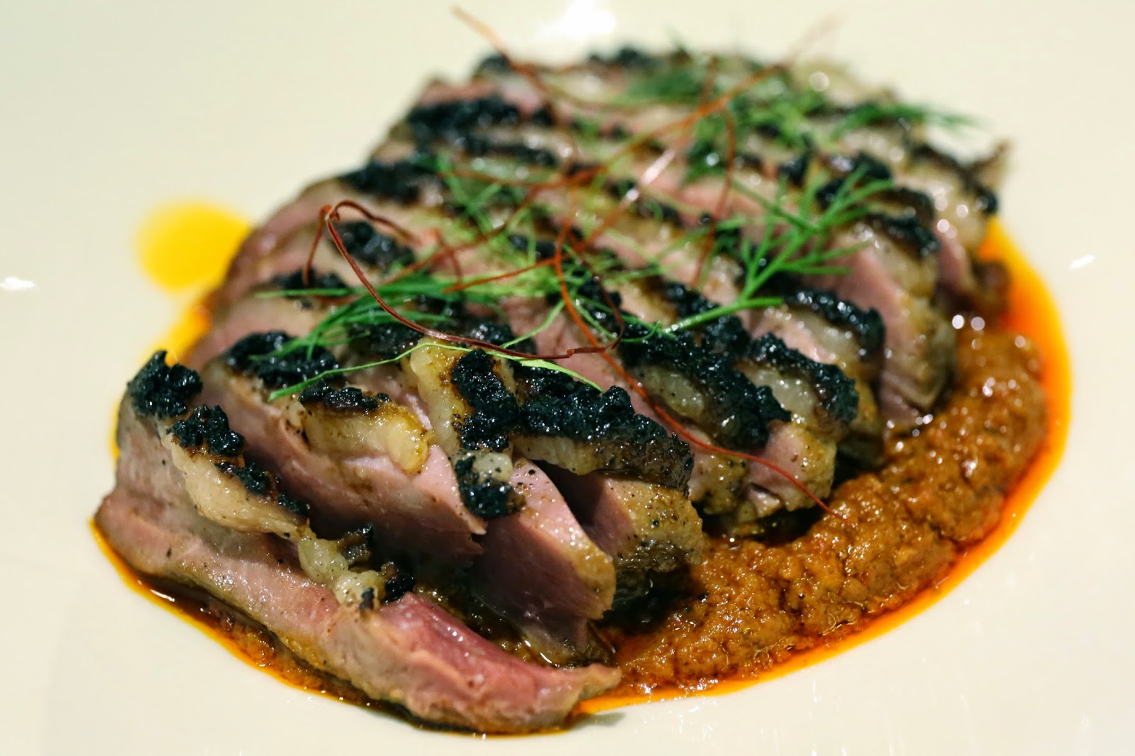 French duck breast rendang, grilled and served pink - I was not the least bit surprised to find Mr. Ho eager to try this option. I was also most curious. While this turned out to be the favorite for both Mr. and Mrs. Ho, I deducted some points for the texture. While the breast was indeed pink, I felt it was just a little bit more chewy than I preferred. For the first couple of slices, I failed to cut it with my spoon (duh...) and ended up shoving the whole slice in my mouth. Not so great. After we asked for knives and cut the slices in half, the bite sizes became more manageable.