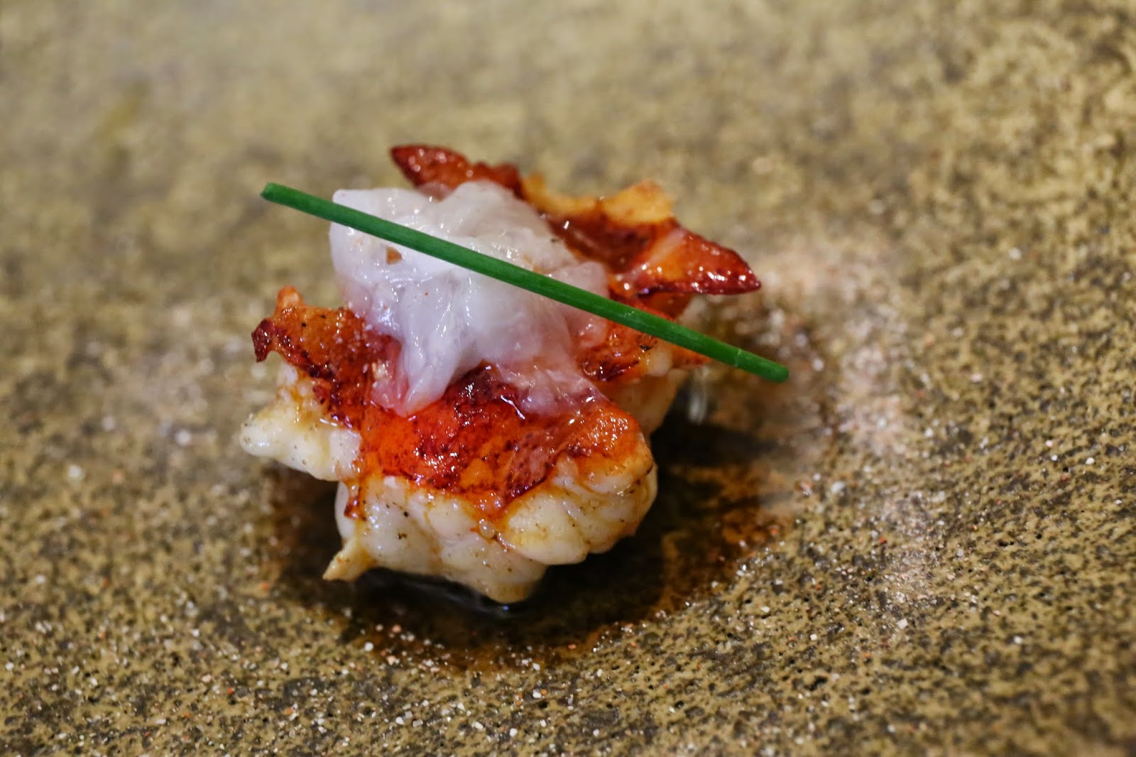 Pan-fried lobster with beef jus and lardo - interesting combination, with both beef and pork elements pairing with the lobster. Unfortunately the lobster was a tad overcooked.