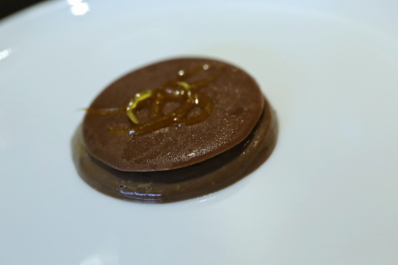 Finally we end up the mignardises, which were little bites of meringue with lemon and coriander, along with the dark chocolate with sea salt.