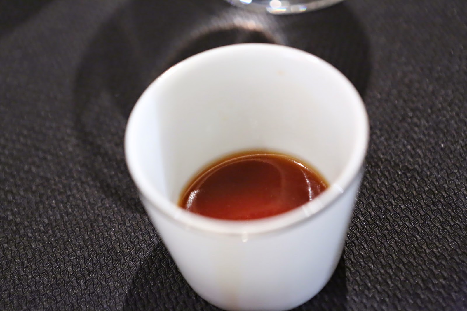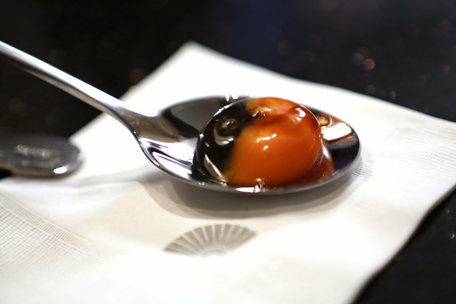 Bloody "mar" - a reinterpreted Bloody Mary with sea urchin juice, which made it nice and creamy. Topped with a cracker with sea urchin mayo and sea urchin tongues.