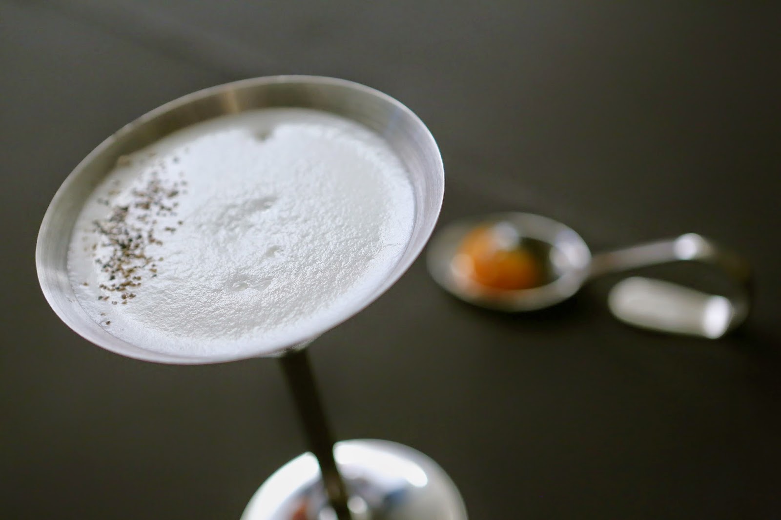 Truffled martini - this was meant to go with the truffled egg, although I didn't get the pairing right... Made with 1½ shots of Belvedere, lime juice, apple juice, egg white, rosemary and basil. Then add a dash of truffle oil and sprinkle with pepper. This was OK I guess, although I didn't really understand why the pepper was only on one side.