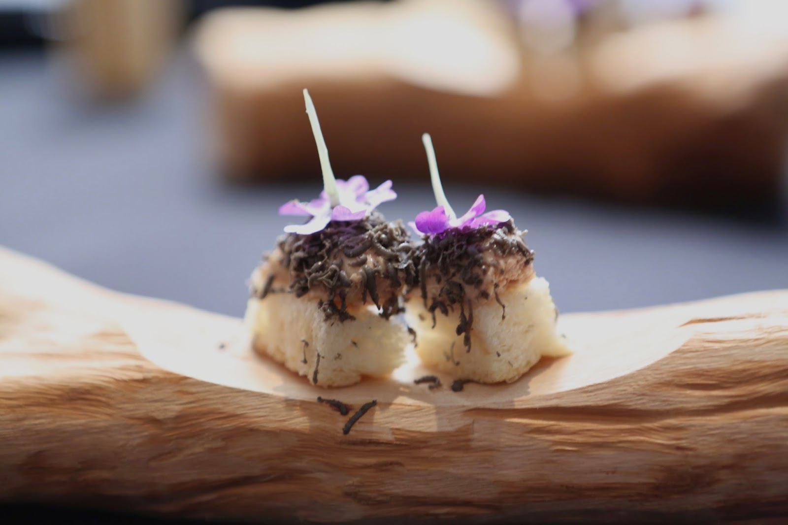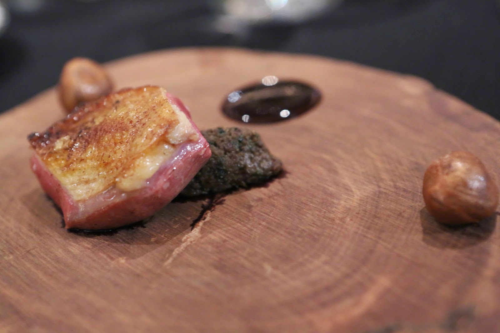 Foie gras ashes - foie gras mousse on croûtons, topped with shavings of ashen foie. Nice and smoky.