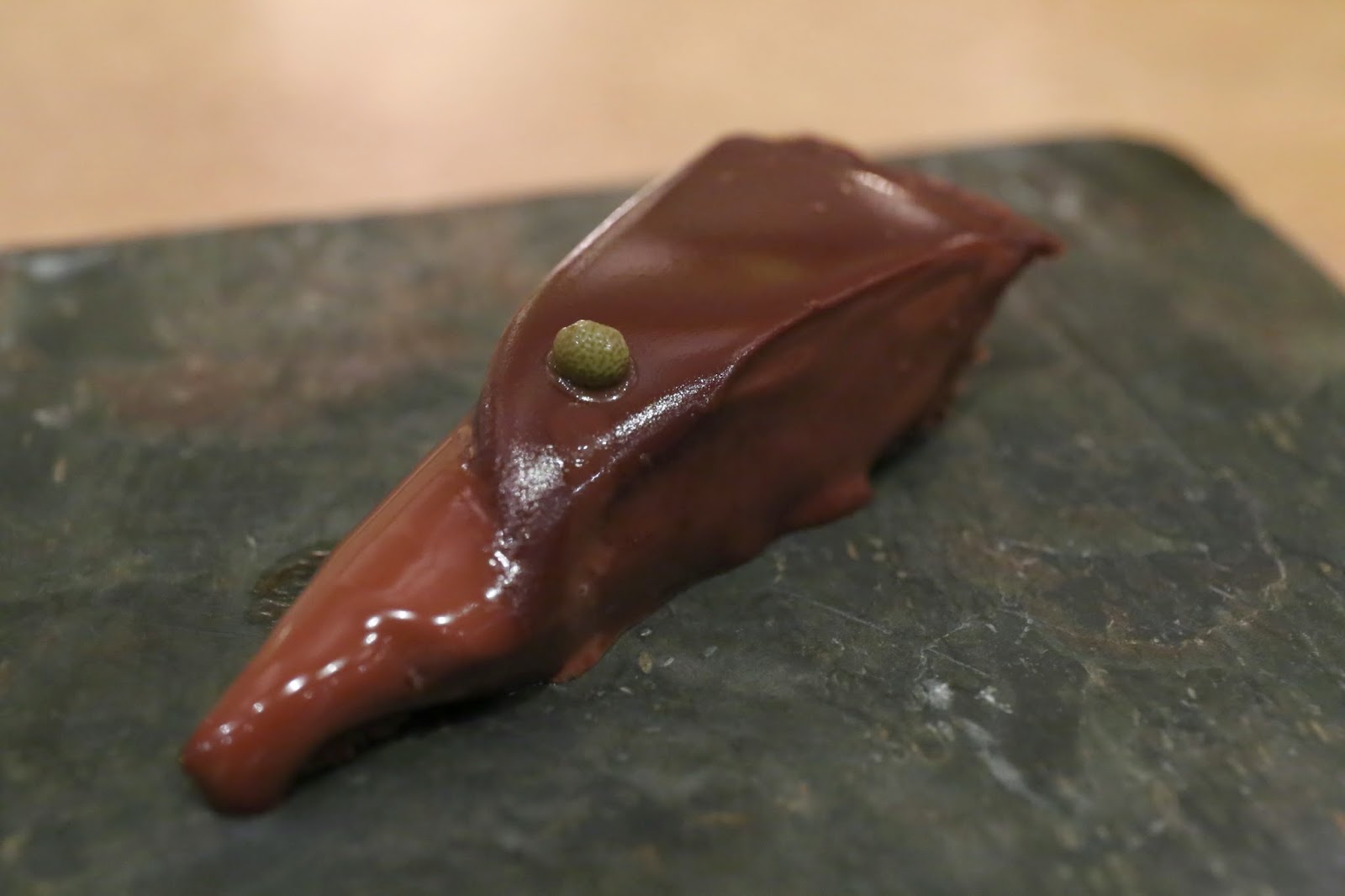 Chocolate tart_cherry blossom - we were told to take the first bite with the "pepper", but it wasn't peppery at all... In fact it was acidic. But the chocolate tart itself was pretty good, although it was melting and falling apart in the ambient temperature.