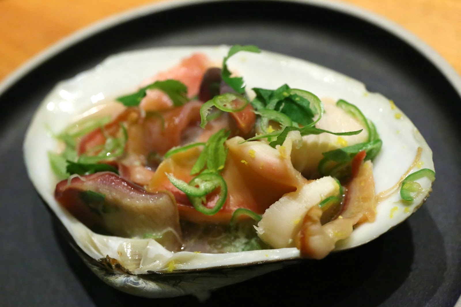 Hamaguri clam, ginger, yuzu, sake - this was one big clam! When we were done, we asked for big spoons so we could drink what was left in the shell. Yum.