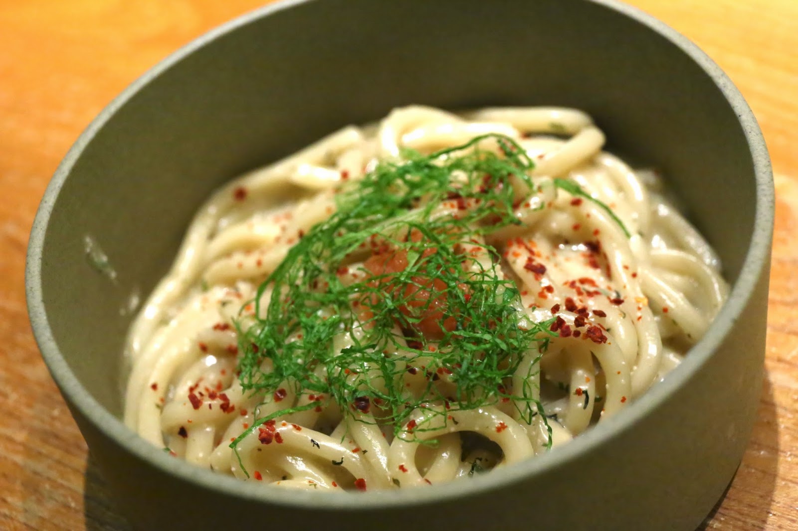 Udon, mentaiko, shiso - I was so disappointed on my last visit when Matt told me that he didn't have the udon due to a supply issue. I'm happy to see that it's back, and I definitely was gonna have me some of that! Great udon with bite, with yummy mentaiko, made a hundred times better by a sprinkle of plum powder and shredded perilla leaves. What a way to finish dinner!