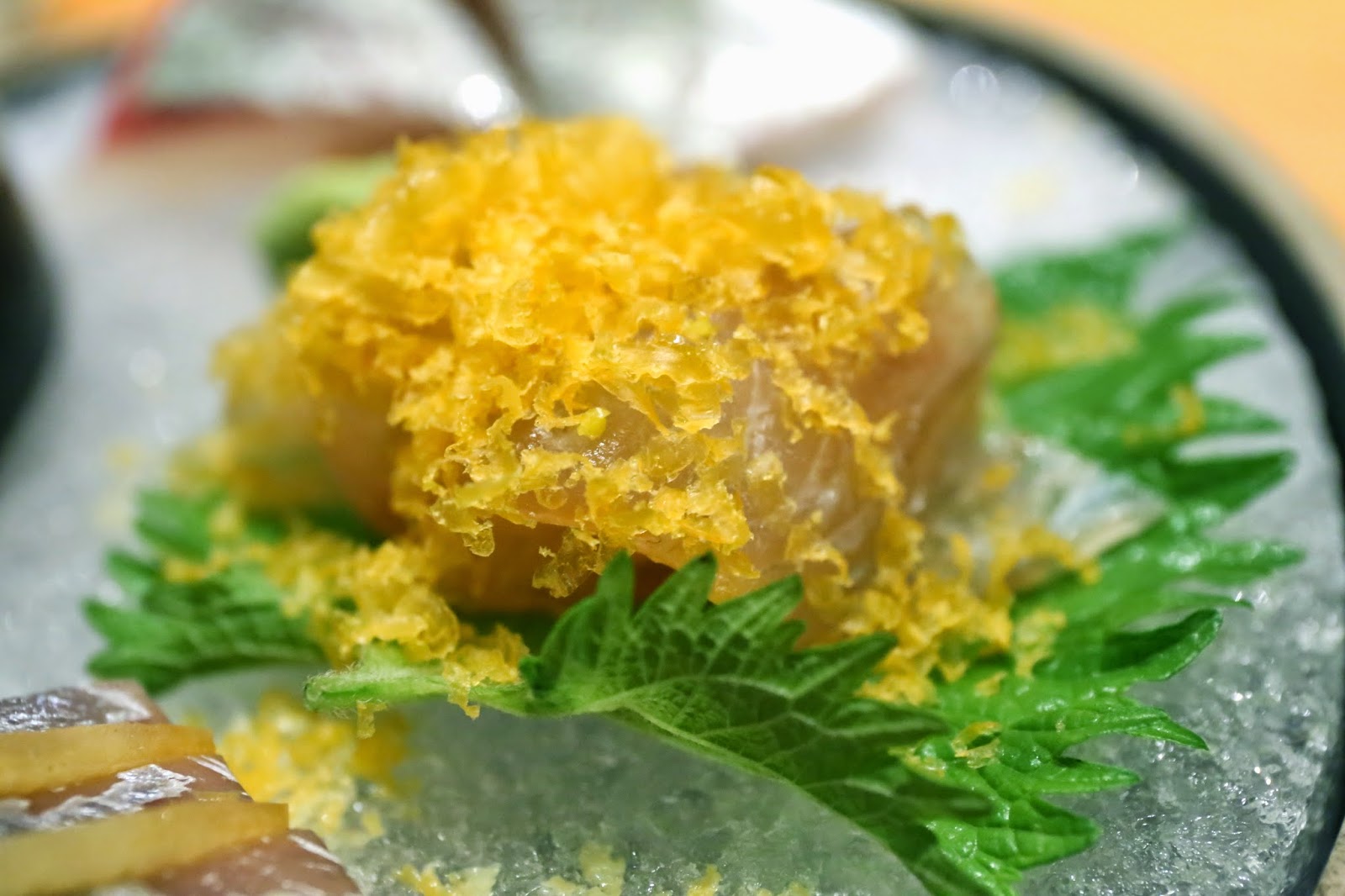 Koshodai koshi snapper sashimi, karasumi, yuzu - I've never had crescent sweetlips (胡椒鯛) before, but I liked this preparation from last time. The combination of shaved bottarga and yuzu makes for a winner every time.