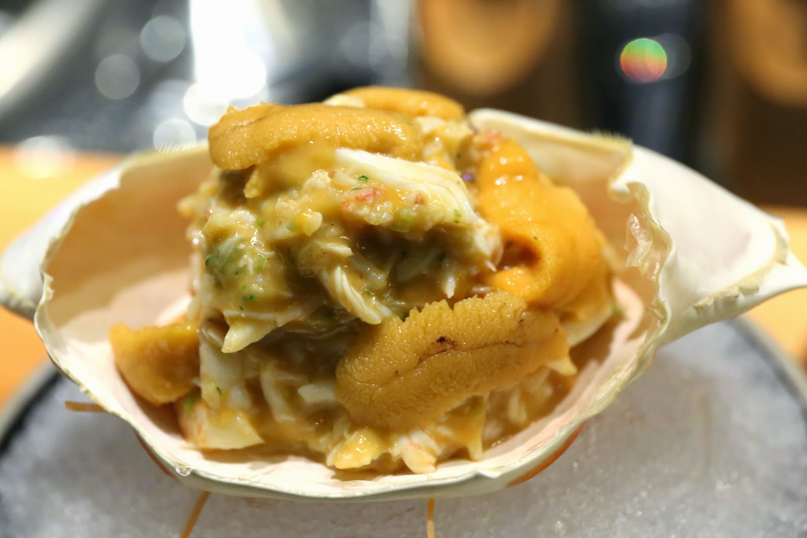 Flower crab, uni, mitsuba - this made Mo' Unni kinda giddy on our last visit, and I'm glad I got to have it again. Mr. Locust noted the inclusion of the slightly bitter mitsuba (三つ葉), which not only added a little texture but also balanced out the sweet and creamy seafood.