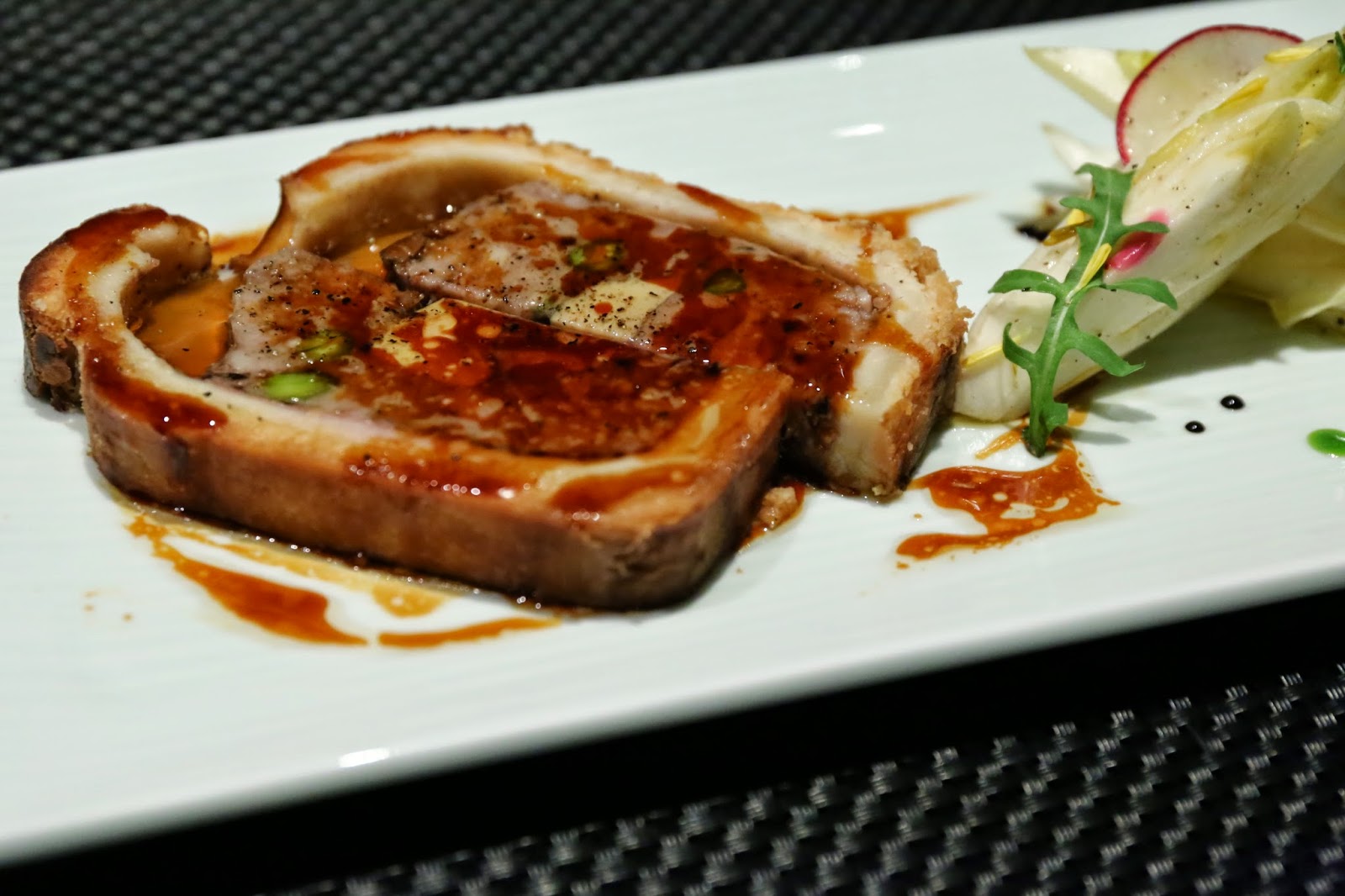 Pâté en croûte - the minute Benoit brought it out to show me, I knew I had to have it. Not many people do it, and I never miss a chance to have it when I see it. Yum! Too bad the gelée had half-melted by the time it got plated and got to me.