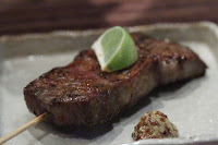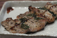 GYU-Tongue: thick cut ox tongue, sea salt, black pepper, whole grain mustard - probably the first thing I'd order at any kushiyaki joint. Thick cut really is the best. Kinda interesting with a dab of mustard, but I still prefer it with just salt and pepper.