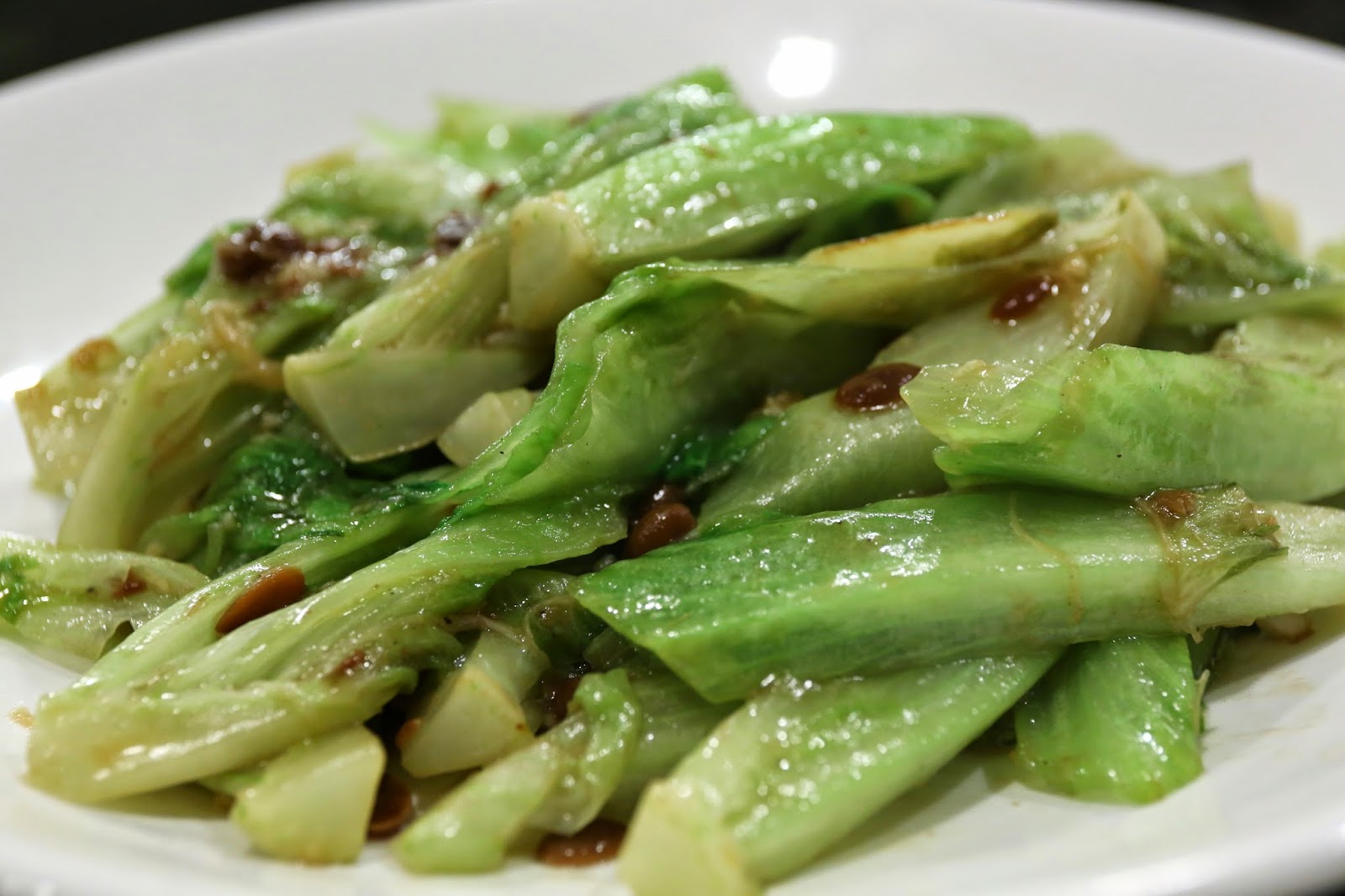 Chinese lettuce with soy bean sauce (麵醬唐生菜) - with fermented soy beans.