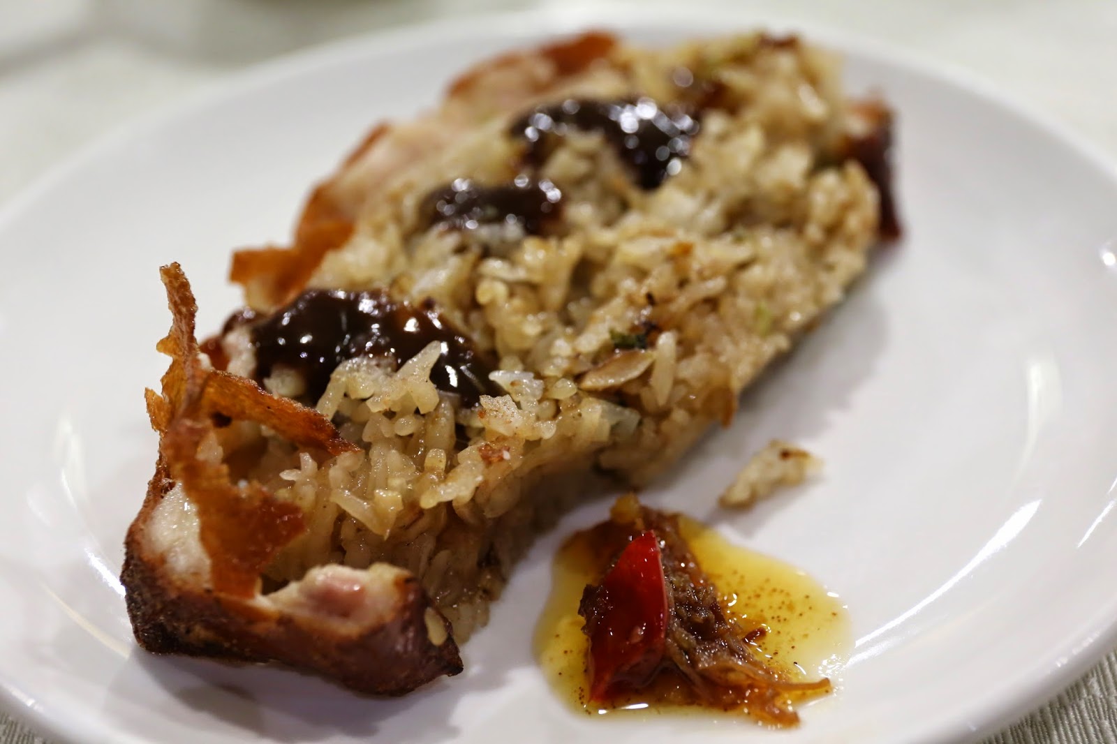 I took a second slice of the pig with the restaurant's XO sauce, which made it a lot tastier. I'm glad we got the annoying Chinese yam (淮山) taken out of the stuffing when we ordered.