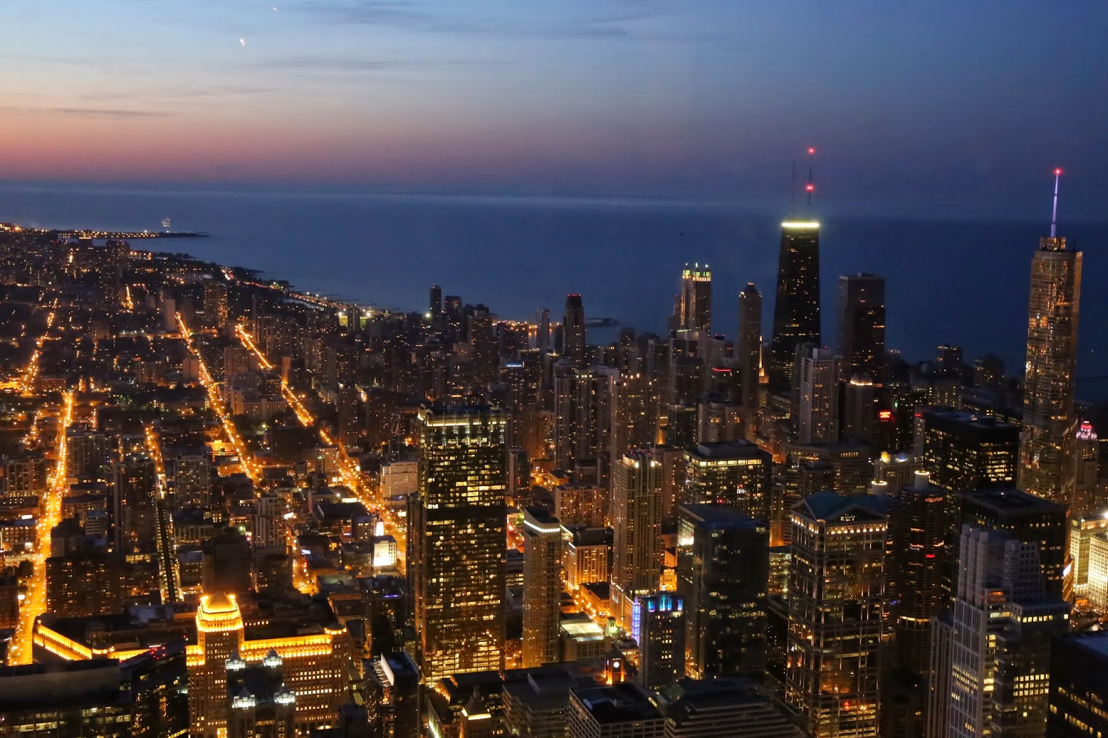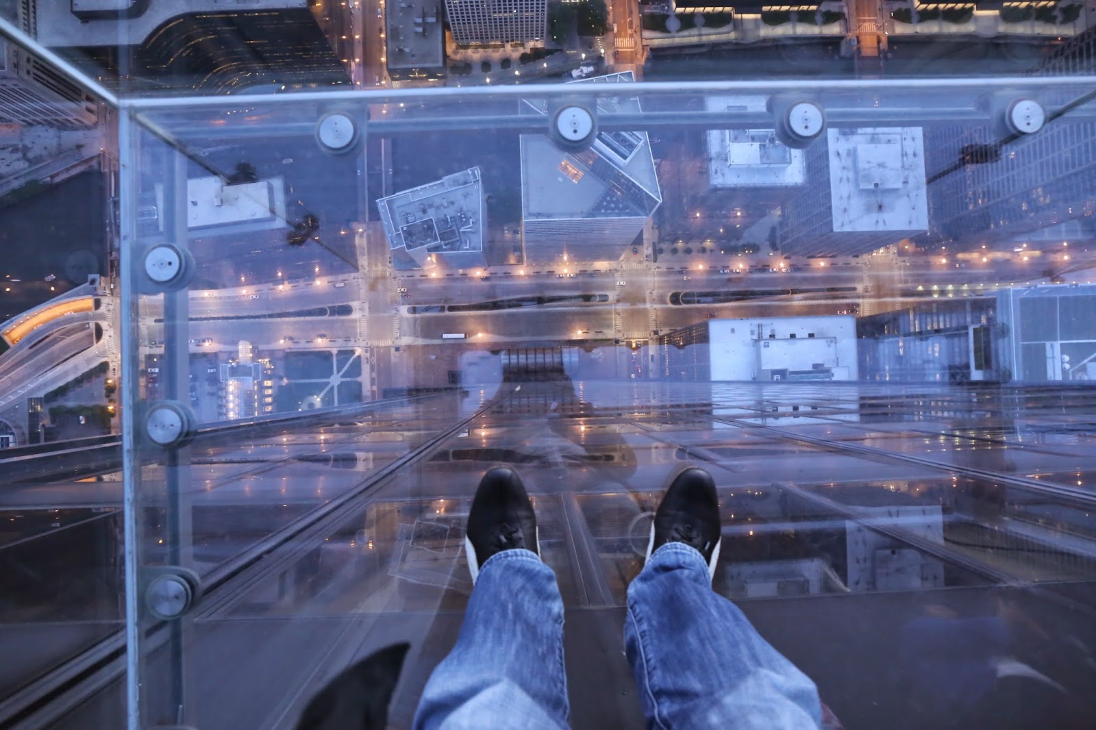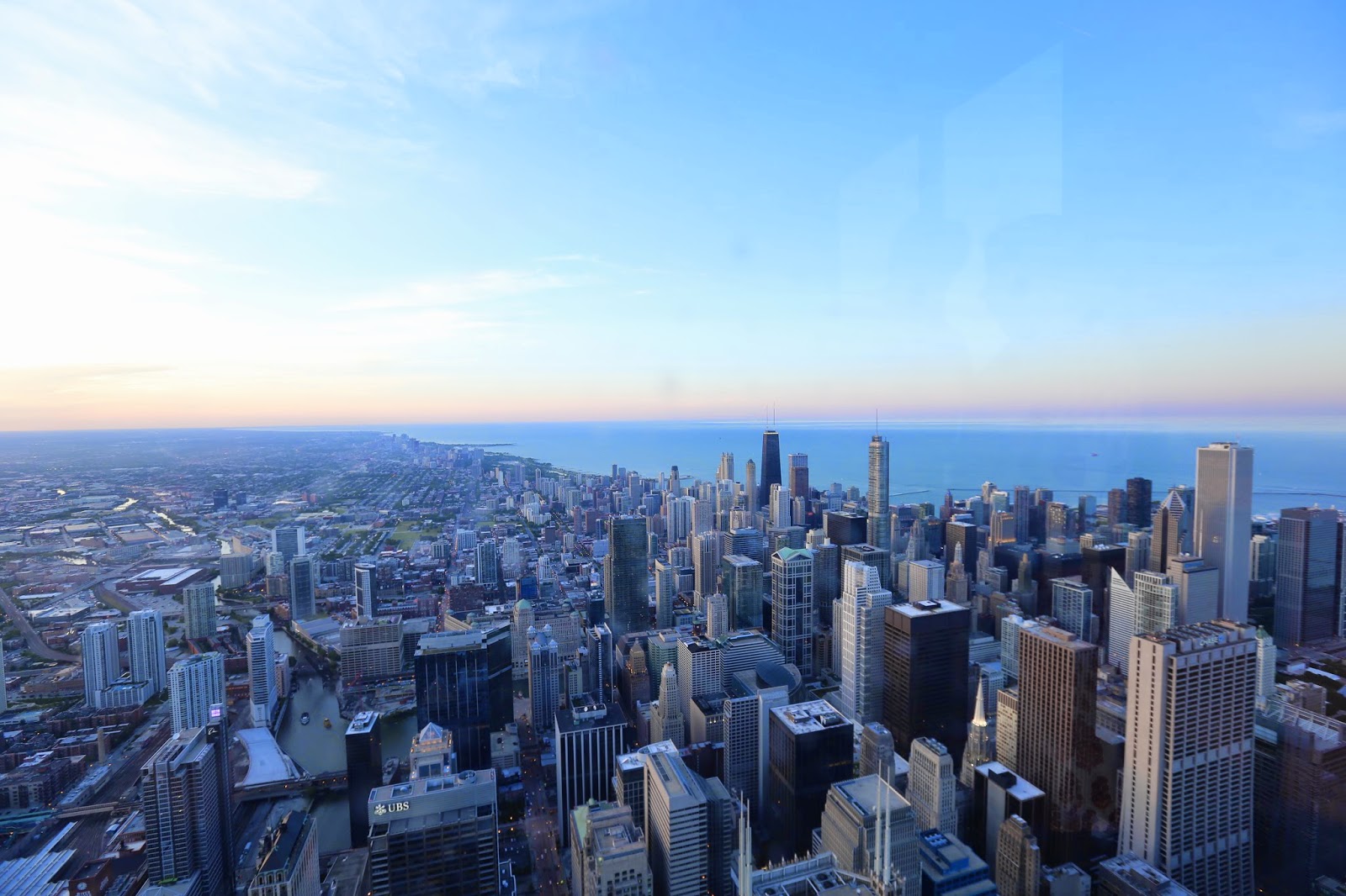I dropped my luggage in my room, picked up my camera gear, and walked two blocks to Willis Tower. I had booked a fast pass online while transiting through Narita Airport, paying double the normal ticket price to make sure I wasn't stuck in line for a long time. Well, as it turned out, there was no line on a Friday evening... so I got up to the 103rd floor Skydeck in no time.