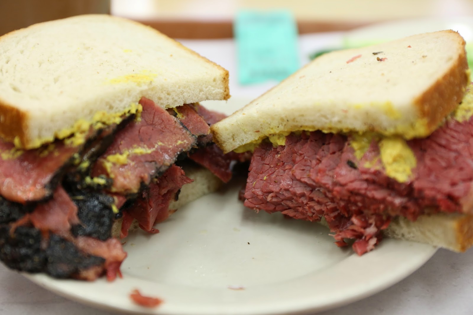 Pastrami and corned beef on rye– I’m being a total copycat here, since this was exactly what Scubagolfer ordered. Instead of mixing the two up, I asked for the two types of meat to be segregated so I could better taste the difference.