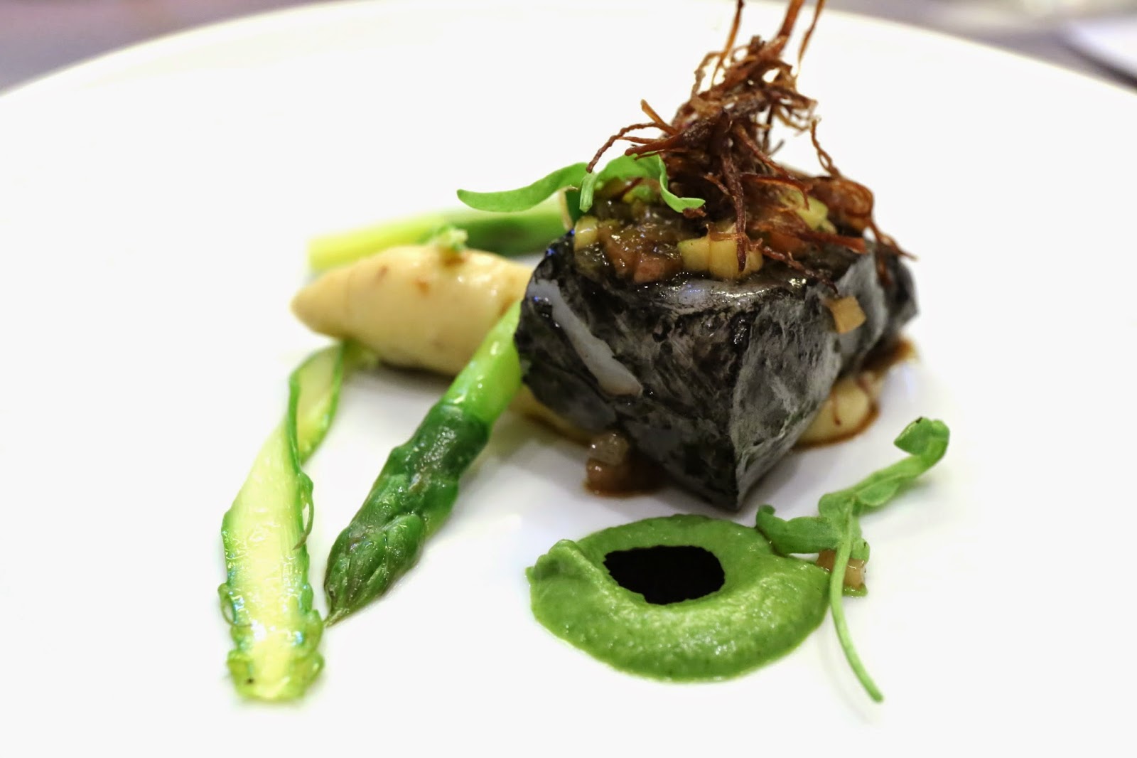 Baked cod with ash, beef brisket, asparagus salad, asparagus bouillon - pretty damn good. I love cod for its juicy, succulent texture, and having a big chunk of it was just really satisfying. Yum.