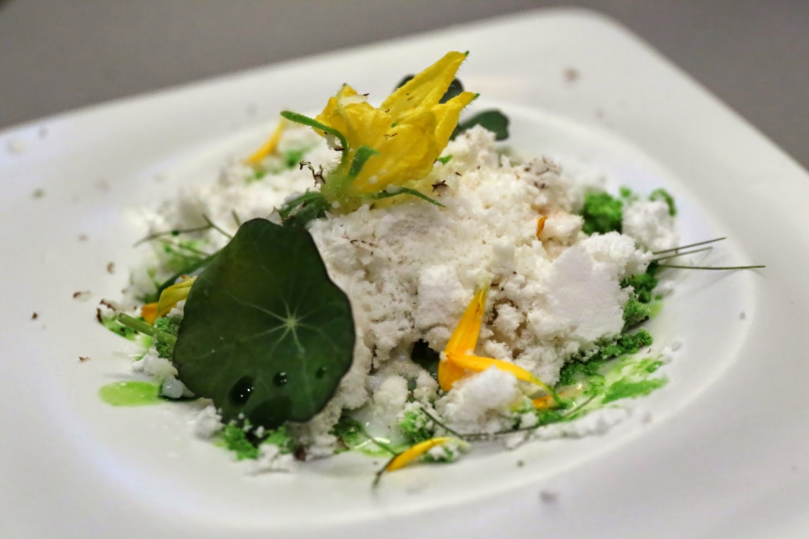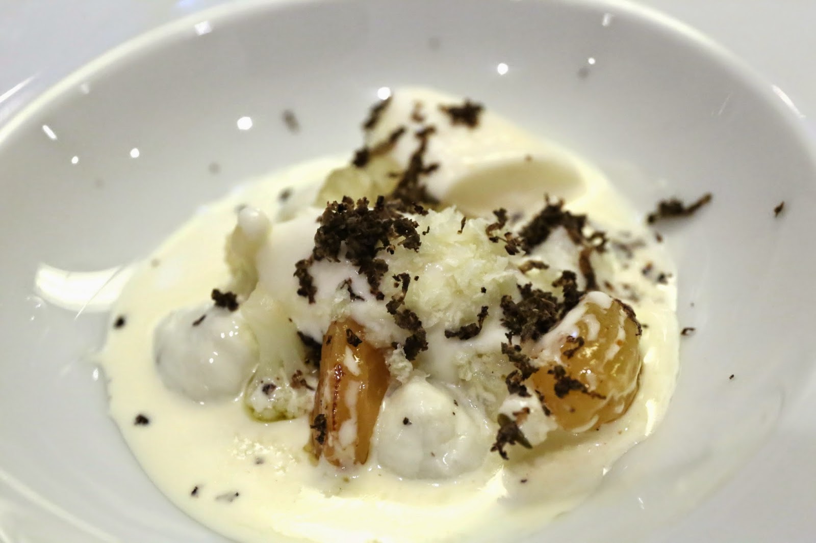 Cauliflower pannacotta, sweetened golden raisins, truffle, mace flavoured gin - the panna cotta was pretty good, and of course I just love cauliflower. The raisins also made it a little interesting.