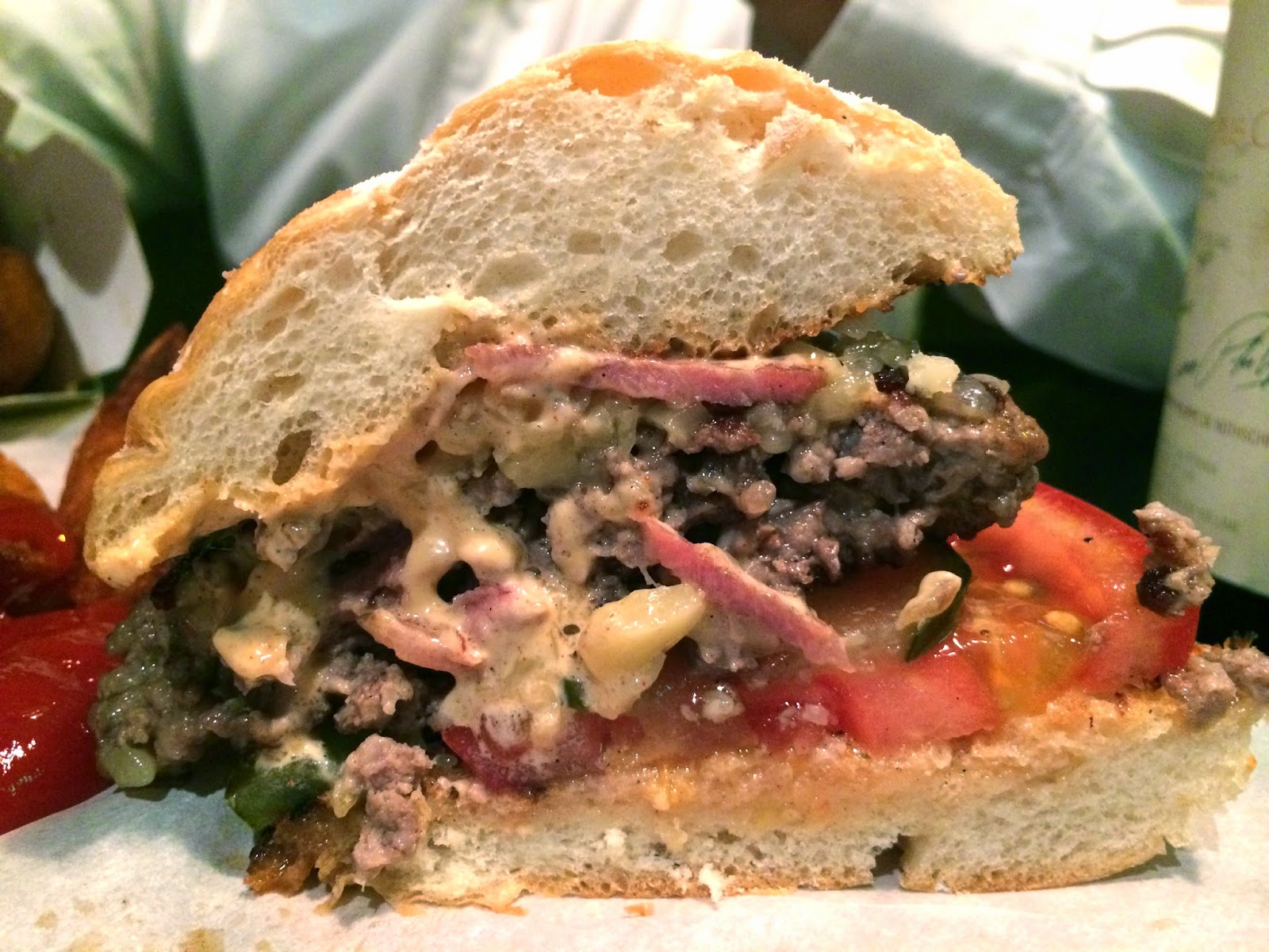 And this is the point where our dinner took an interesting turn... The Ox and a couple of others were complaining about the portion size and the amount of food we've had so far, and wanted something extra. So we called up the Butchers Club Burgers, found out that their last order was in a matter of minutes, and proceeded to run out of the Principal, en masse, and went down a couple of blocks for a "pre-dessert".
