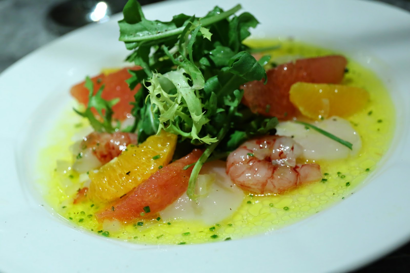 Ceviche: Yilan shrimp, Hokkaido scallop, citrus salad - oh this was good... The Stout red shrimps (胭脂蝦) from Yilan (宜蘭) were boat-fresh and very sweet. The Hokkaido scallops were yummy. The ceviche was done with a mixture of grape juice, lemon juice, grapefruit juice along with some olive oil. Finished with some grapefruit and orange wedges, as well as some pickled fennel from Fudy's own farm.