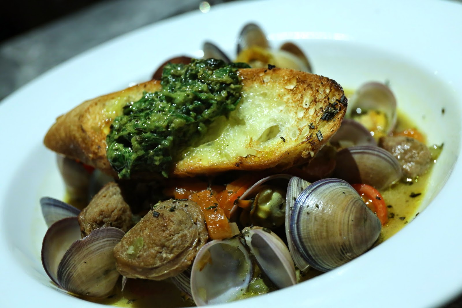 Clams and house chorizo, roasted bell peppers, farm pesto, grilled bread - the Venus clams from Donggang (東港) were pretty good, but I really liked the house-made chorizo. The bell peppers were also very delish, and the pesto - made from herbs Fudy grows himself - was wonderful. I wish I had more stomach space to take down more of the bread and pesto.