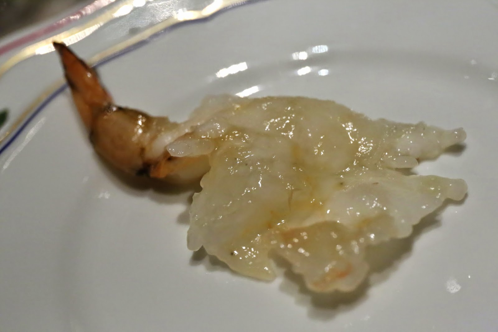 So, they take the shells off of the prawn, butterfly it, then pound the shit out of it. Then they cook it in superior broth. The result? The texture was completely rubbery, almost like a sheet made of prawn paste that has gone through a blender. Since they cooked it in superior broth, all I could taste was ham, not prawn. In fact, the only time I remotely tasted some prawn was when I bit into the last bit of the tail, as the flesh was still protected by the shell. I think my friends pretty much all had the same reaction. Not a fan.