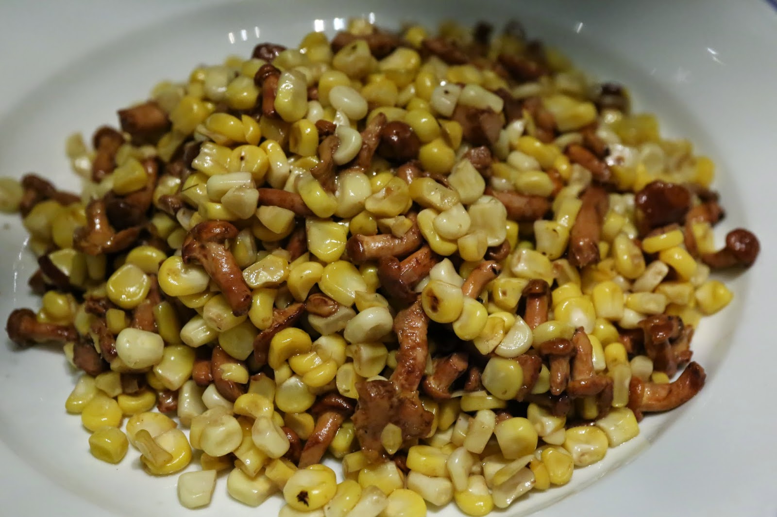 Stir-fried chanterelles with basil and sweet corn (黃菌炒玉米粒) - the chanterelles were very nice, and I loved the crunchy texture and sweetness of the corn.