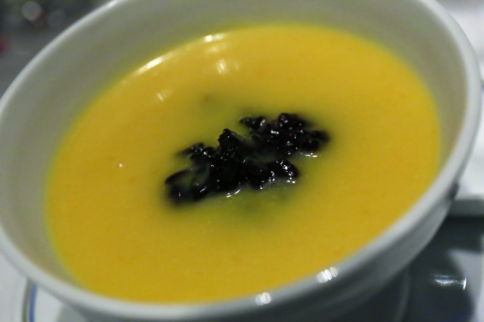 Sweet pumpkin soup with purple glutinous rice (南瓜紫米露) - yum! I thought the two main ingredients worked together perfectly.