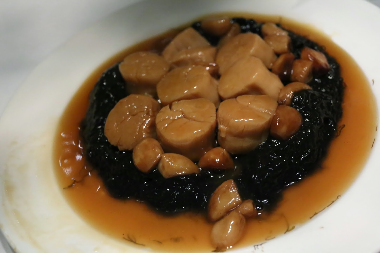 Dried scallops braised with garlic cloves and sea moss (珧柱蒜脯) - so we finally get to have this, even though it's out of sequence.