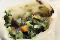 Steamed vegetarian dumplings (蒸素餃) - very nicely done, although in more of a rustic way. The skin wasn't as thin as you'd find in more refined restaurants, but this retained its elasticity and bite. Everyone had a quota of two dumplings, but poor C had to take four of them because his wife didn't contribute…