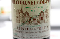 2003 Château Fortia Cuvée du Baron - nose of forest, a little farmy, a little sweet and grapey. Still reasonably concentrated on the palate. My contribution.