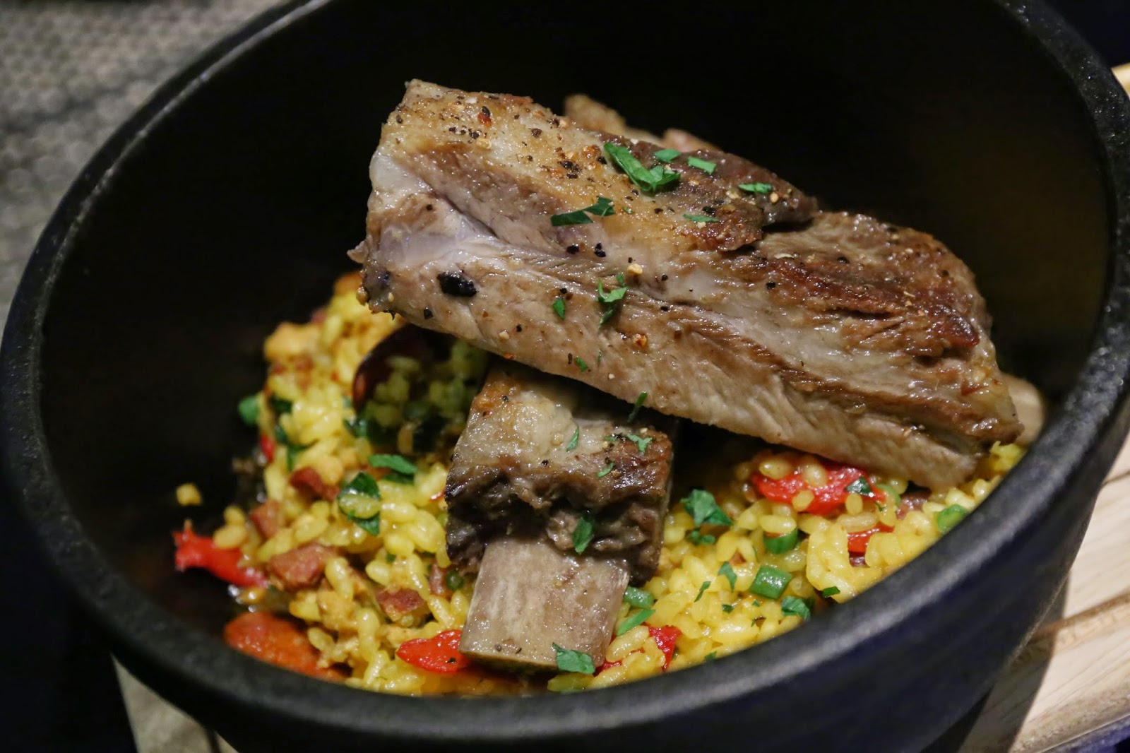 Spanish Duroc pork ribs bomba rice, chorizo and piquillo peppers - well, I don't seem to remember Harlan offering any "stone pot paella" at any of the other outlets, so I figured I'd try this out. The Spanish Duroc pork ribs were the same as the ones from Comfort, and really melt-in-your-mouth yummy as I had expected. The rice was very tasty thanks to the piquillos and the chorizo, although once I started spooning the homemade garlic aioli on top I found myself unable to stop. We were also told that the finishing touches were added by putting the whole thing into the Josper. However, the one minor flaw here was the complete absence of socarrat. I even tried leaving some of the rice in the stone pot, but there wasn't enough heat left. Oh well...