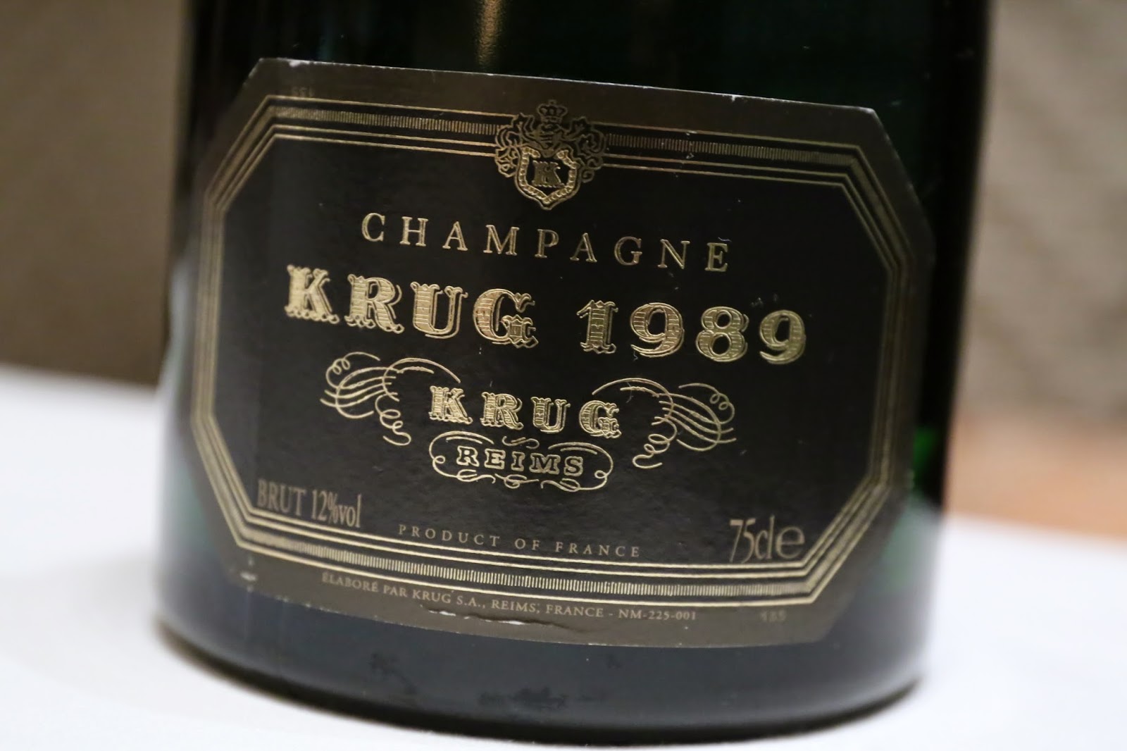 1989 Krug - nice and aged, a little savory, salty plum, sweet grass and marmalade. Slight hint of bitterness on the finish. Very lovely.