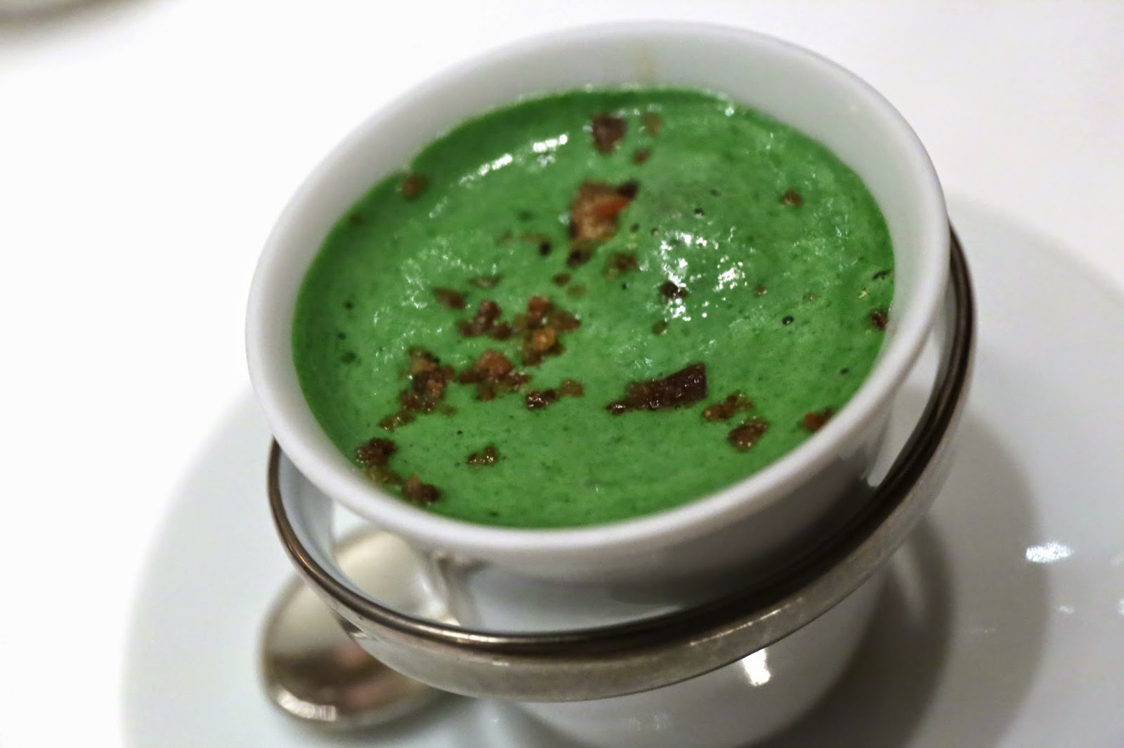 Girolles, carrots, shallots and green peas with tarragon emulsion and crispy bacon - pretty nice to have a mix of textures inside. The tarragon emulsion was pretty rich.